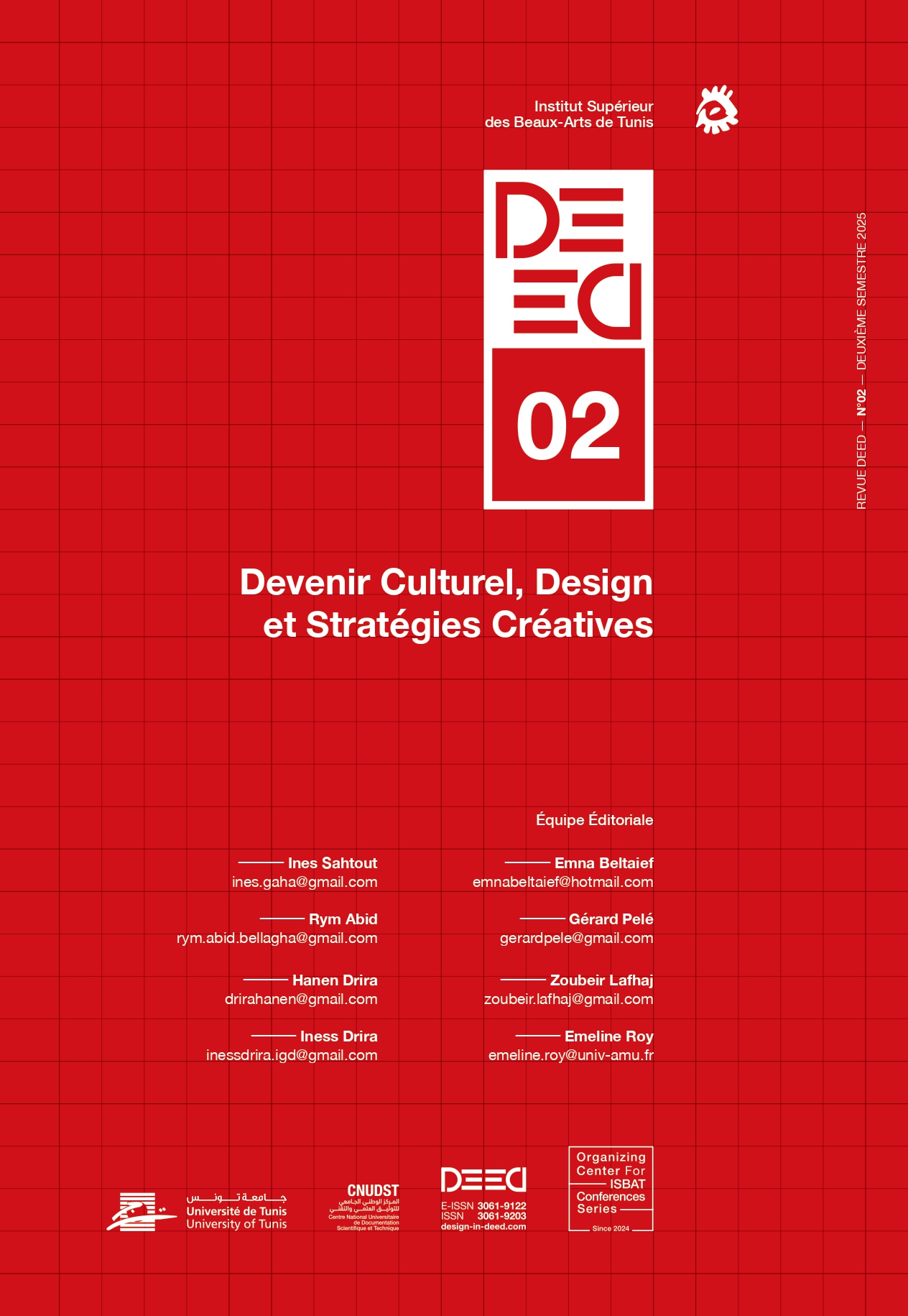 The DEED journal is a space of reflection and discussion around the multiple dimensions of design education. Its objective is to bring out new perspectives and innovative pedagogical approaches in this rapidly evolving field. This first issue is a continuation of an international conference organized by the Higher Institute of Fine Arts of Tunis under the theme "Teaching design, designing education". The journal aims to deepen the reflection on the practices, challenges and perspectives of design education, by examining from different angles how the conception of design and artistic practices influences and shapes pedagogical approaches, and conversely, how teaching choices impact design and transmission in these disciplines.
